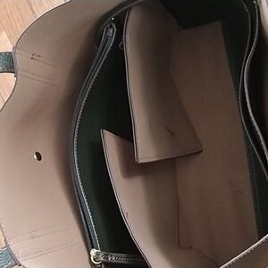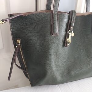 Travanti Pebble Faux Leather Olive Green Tote large with Pouch
