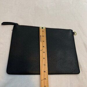 Travanti black faux leather ipad device tablet sleeve zipper closure, red interior, excellent condition 11" x 8"