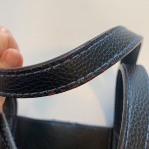In good shape travel tote bag. Interior is blue. 19” wide by 11” inches deep. Gold color metal accents