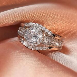 💎 Travel Bridal Set | Round Center Stone, Micro Pavé Band