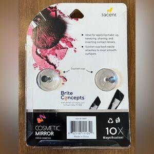 This mirror is perfect for on the go at only 3.5 inches! Sleek enough for your purse, make up bag or travel case. With 10x magnification, you won’t be able to miss anything. Included are two NEW headbands to help hold your hair back during use.