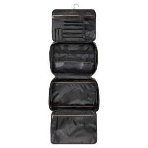 Travel Cosmetic Toiletries Large Hanging Hook Bag Black Saffiano Leather NEW