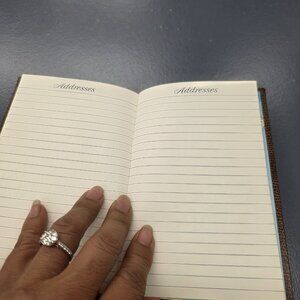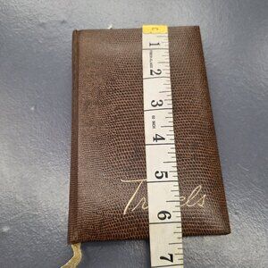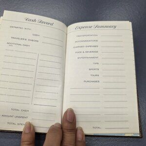 The product is a rare vintage travel diary by C.R. Gibson, made in the USA with a leather cover in brown and tan colors. It is not personalized, making it a unique and collectible item for those who appreciate quality and classic design in their office supplies. The diary's traditional and timeless appeal makes it a standout piece for those seeking a unique and well-crafted item for their collection.