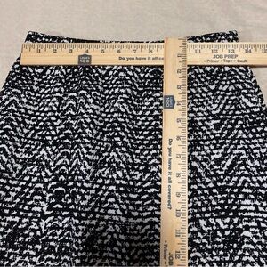 This chic black and white midi pencil skirt is super versatile and practically indestructible - can be balled up in a carry on and emerge wrinkle free and ready to pop on for a corporate meeting or a lunch date.