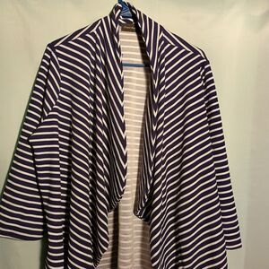 Travel Elements Navy White Striped Open Front Cardigan – Lightweight