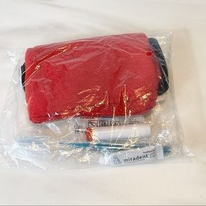 air business class Travel Flight Amenity Bag Kit, Brown/Red Zippered Bag. Shipping in 1 business day.