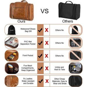 DURABLE WATER-RESISTANT MATERIAL: The toiletry Dopp kit made of premium water-resistant PU leather fabric with supple touch; 5mm well-padded design to keep full bag's shape and provide great protection. Sturdy stitching and heavy-duty material can also be implemented for long-lasting performance.