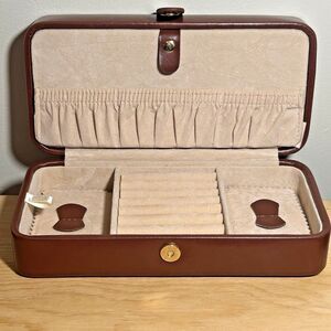 Travel Jewelry Box Organizer Vegan Leather Brown 9X5X3 EUC