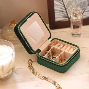 Travel Jewelry Box Organizer Velvet Travel Case With Mirror Ring Earrings Neckla