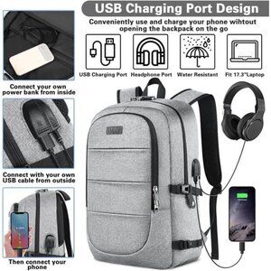 🧿【External USB Charger Port & Headphone Jack】 USB charging backpack with charging cable is convenient to charge smart phone/tablet/other devices. Headphone Jack: you can listen to your favorite music when you are carring the backpack on road. Note: Not Include Power Bank