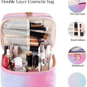 LARGE CAPACITY Size:8.7" x 6.5" x 5.9", this makeup bag is large enough for your beauty essentials, such as lipstick, mascara, air cushion, powder, brushes and more.The layered design of this make up bag allows you to store your precious cosmetics more organized and tidy.