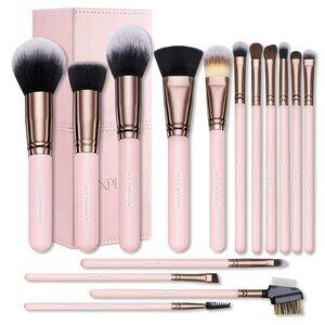 Travel Makeup Brushes with Case, 15 Pcs Pink Makeup Brush Set Professional for F