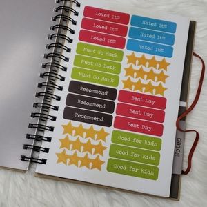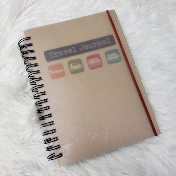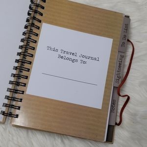 This is a cute book to keep your travel notes in! Comes with stickers! There some markings and wear throughout the book but no writing inside.