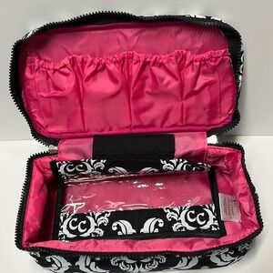 Quite simply the best travel bag you will ever find! Place your smaller tablet or gaming system in the main compartment. Four inside compartments keep cords and chargers organized. A removable clear zipper pouch is perfect for headphones. Or use the bag for toiletries on your next trip. This is available in 2 Colors, Damask with Pink or Teal. (Additional listing in my Closet if you prefer Teal)