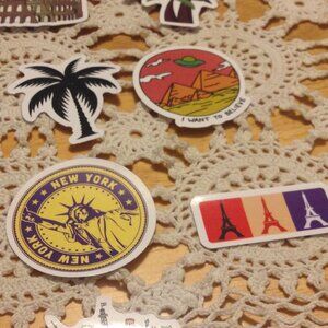 You get 22 colorful new peel-off stickers for crafts projects, scrapbooking or for use on computer, hydration bottles like hydroflask or cellphone. Some may be a little big for small cellphones but would work on tablets. These are travel themed.