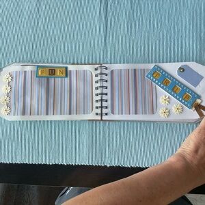 Stylish travel-themed spiral premade scrapbook. Features multiple decorative layouts. Perfect for journaling or scrapbooking. Beautifully embellished & Picture ready! Great size for purse, tote bag or desk!