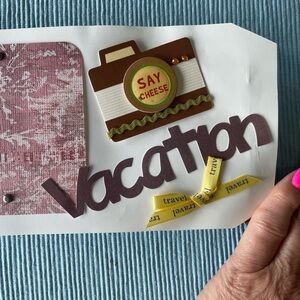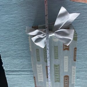 Travel Themed Pre-made Spiral Scrapbook with Bow- picture-ready! 8.25x4.5”