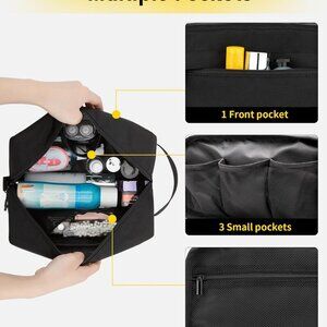 Quality material: The toiletry travel bag is made of quality polyester material that has no unpleasant smell. The sturdy and wearable polyester material makes the bag itself very well-constructed to keep the shape and protect your toiletries from splashed water