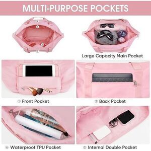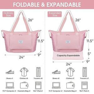 With a spacious main compartment, multiple pockets and a wet bag, you can pack all your gym equipment. You can also use it as weekender bag, work bags for women, or weekender bags for women for your longer trips packing clothes, shoes, and toiletries. expandable you to make the travel tote larger when neeed.