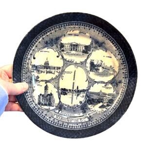 Travel Tourist Souvenir plate Washington DC Landmarks blue white vintage ceramic