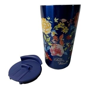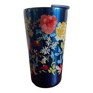 Travel Tumbler Blue Multicolored Floral Print PIONEER WOMAN Aluminum Mug & Lid