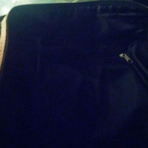 Pink and black, plenty of room and space, two side handles, one middle strap/silver buckle, new without tags?? smoke and pet free home