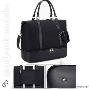 Travel Weekender Bag Overnight Travel Tote Luggage Black with shoe compartment