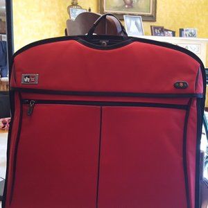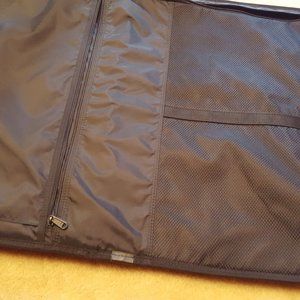 This ideal travel bag folds to a size of 20"x23" while allowing all the space needed for hanging several garments, hangers included, with additional storage space in one large pocket outside the closed bag, a large pocket inside the bag and two medium pockets to fit everything you need for a weekend or short business trip. Very well made.