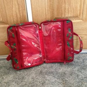 Red Hawaiian flower travel bathroom bag. Two large inside pockets to hold anything.