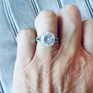 This is a 3 CTTW brilliant cut stone with silver setting
