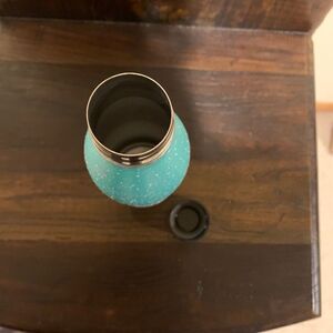 Beautiful turquoise bottle with raised paint effect red and white splashes. Great clean condition I think it’s 24oz capacity
