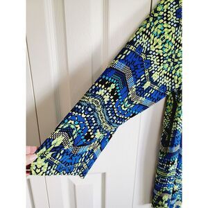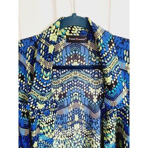Travel Elements Plus 2X Slinky Stretch Open Jacket Shirt Topper Blue Green Print