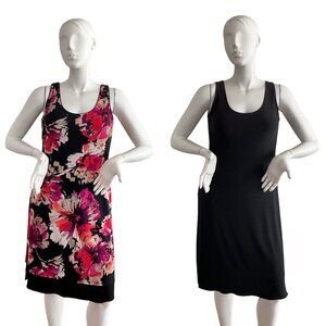 TravelSmith Reversible Black Floral Tank Vacation Dress S
