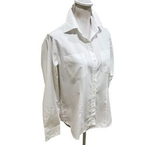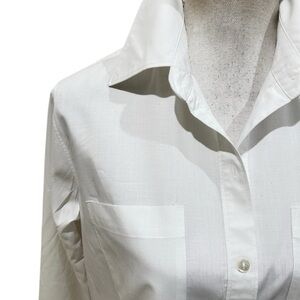 Chic and versatile white button-down from Travel Smith. Features classic collar and front pockets. Made of 100% polyester. Ideal for any occasion. Classic. Elegant. Euc like new.