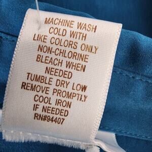 TravelSmith Womens Tunic Shirt Micro Suede Size Large Teal Blue Abalone Buttons