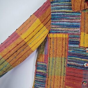 TravelSmith Woven Jacket M Button Front Multicolor Stripe Check Boho Tweed