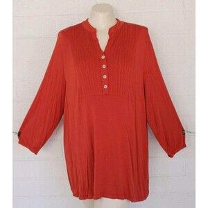 TravelSmith XL Red-Orange V-Neck Tucked Bib Front Long Knit Tunic Top
