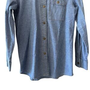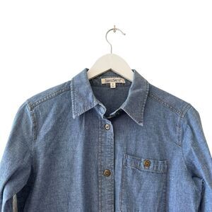 TravelSmith women's denim button-down casual chambray blue cotton blend shirt SZ S #2520