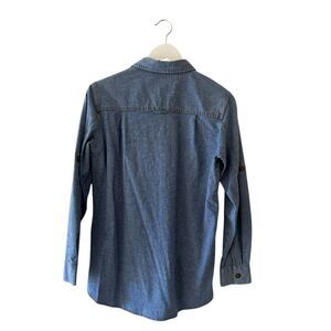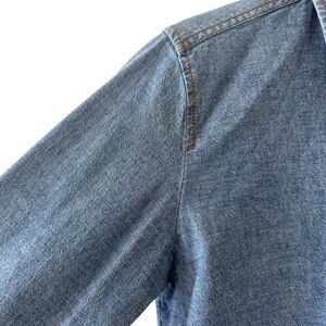 TravelSmith women's denim button-down casual chambray blue cotton blend shirt SZ