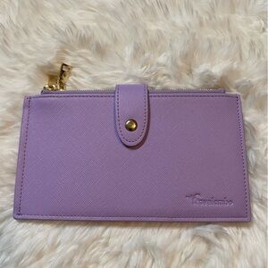 Introducing the Travelambo Lilac Bifold Wallet, a beautifully crafted accessory that perfectly combines style and functionality. This compact travel wallet is in pristine condition, showcasing a lovely lilac hue that adds a touch of elegance to your travel essentials. Its thoughtfully designed bifold structure provides ample space for organizing your important items such as cards, cash, and identification, all while easily fitting into your bag or pocket. Ideal for the modern traveler, this wallet not only keeps your belongings secure but also enhances your travel experience with its chic and vibrant appearance.