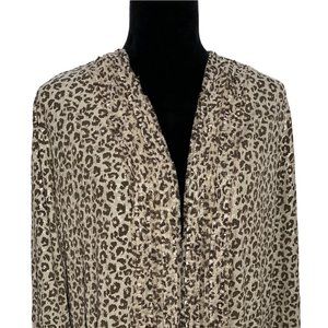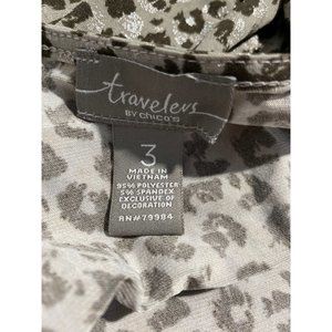 Travelers By Chicos 3 Cardigan Sweater Knit Topper XL Gray Brown Metallic Print