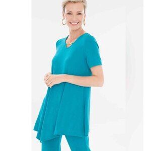 Travelers By Chico's Turquoise Short Sleeve Tunic Size 1 (8) NWOT