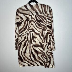 Travelers Chico's Zebra Print Liinen Blend Cardigan Cream Brown Open Front Sz 2