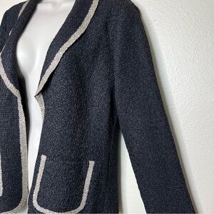 Travelers Collection Chicos Textured Crinkle Open Front Black Tan Jacket Women S