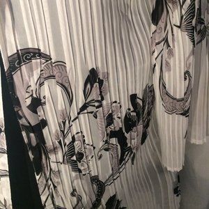 This is light as a feather with folded pattern and delicious design. I pretty much only wear black and white and this certainly makes a statement. You can wear really bold jewelry with this! Perfect for a cocktail party or dinner out. The camisole underneath is not included.