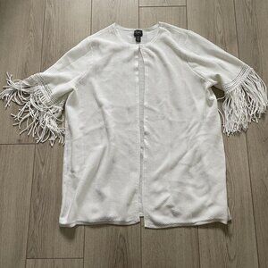 Travelers Collection by Chico's Women Fringe Duster Cardigan Size 3 White
