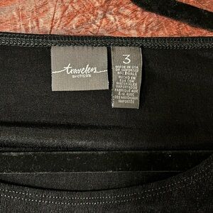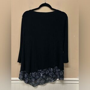 Travelers by Chicos Black with Printed Hem 3/4 Sleeve Blouse Size 3 (XL)