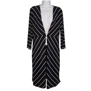 Travelers by Chicos Long Cardigan Duster Geo Stripe Slinky Navy Blue Size 1 M/8