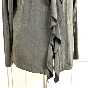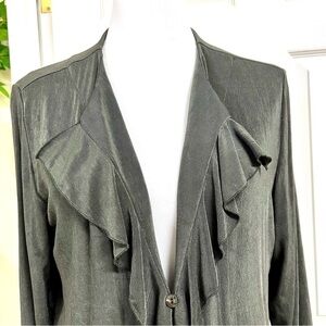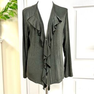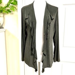 CHICO’S Traveler super soft dark Olive comfy ruffles water falls cardigans.