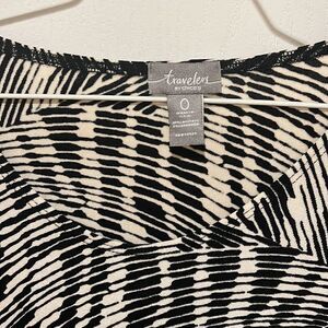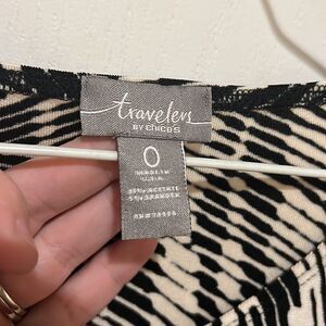 Excellent condition. Travelers by CHICO'S Black & White 3/4 Sleeve Abstract Zebra Print. Size 0 which is a small/4. Approx meaurements across chest 16” length 25” Lightweight, stretchy, and super soft..